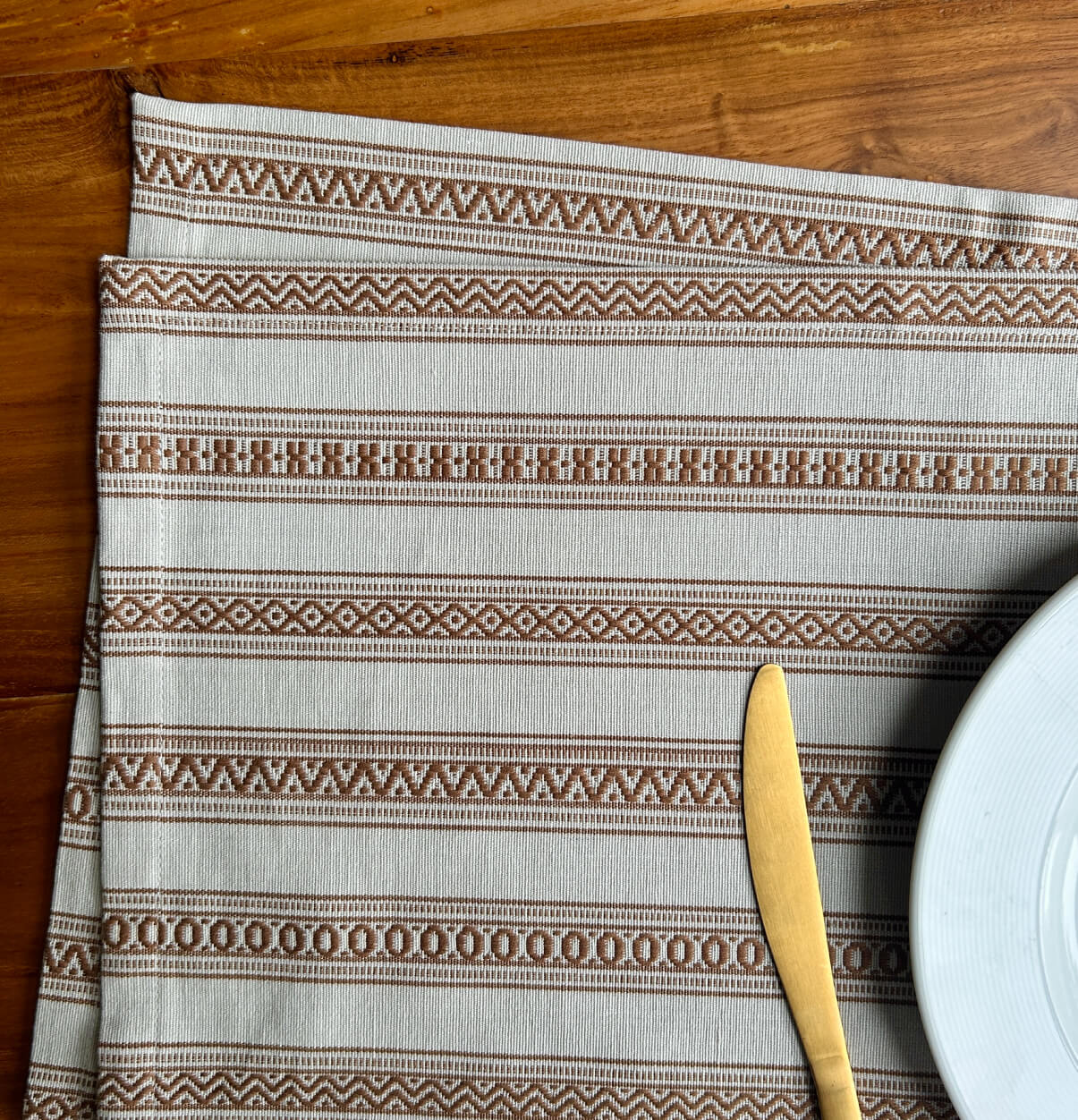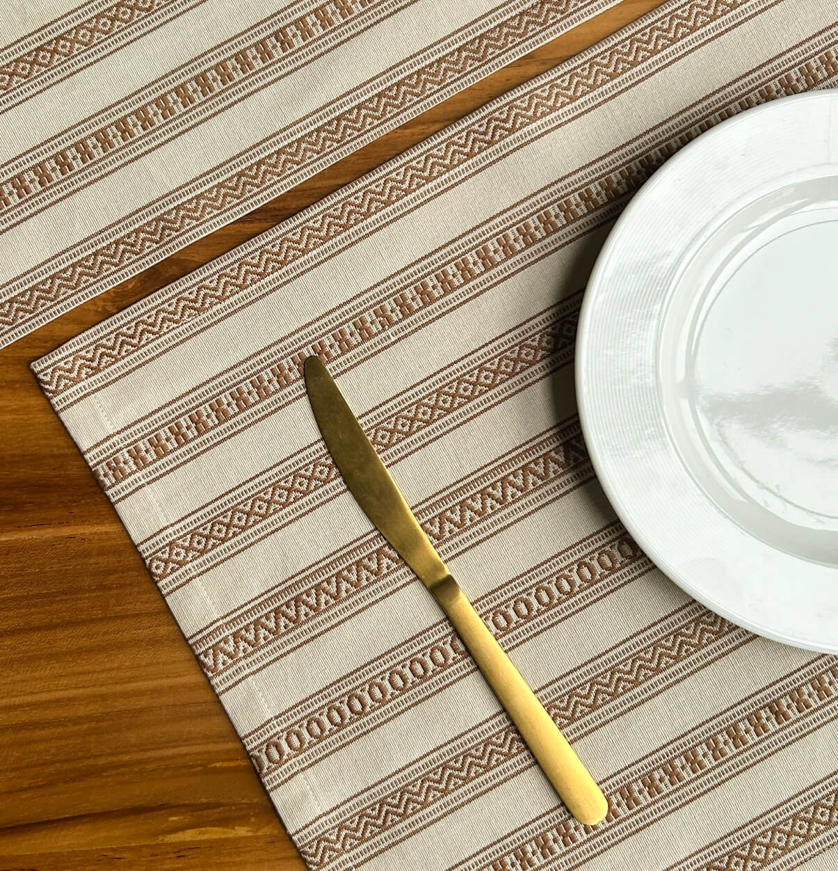 Vintage Weave Cotton Table Mats Beige/Brown – Set of 6