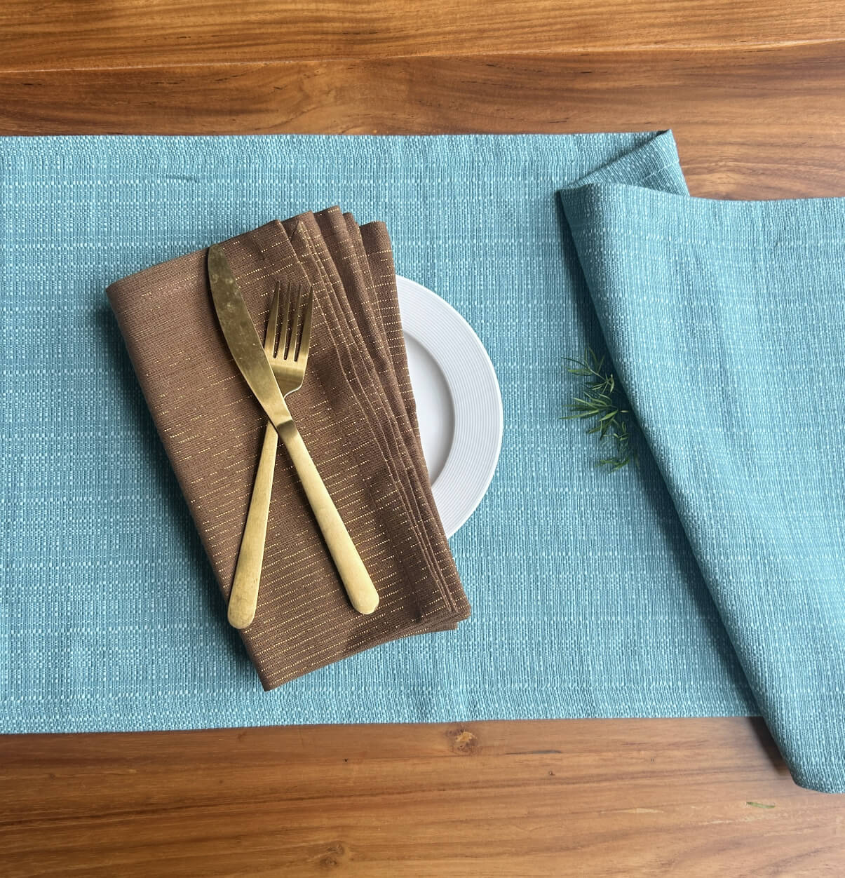 Panama Weave Cotton Table Runner Dusty Turquoise