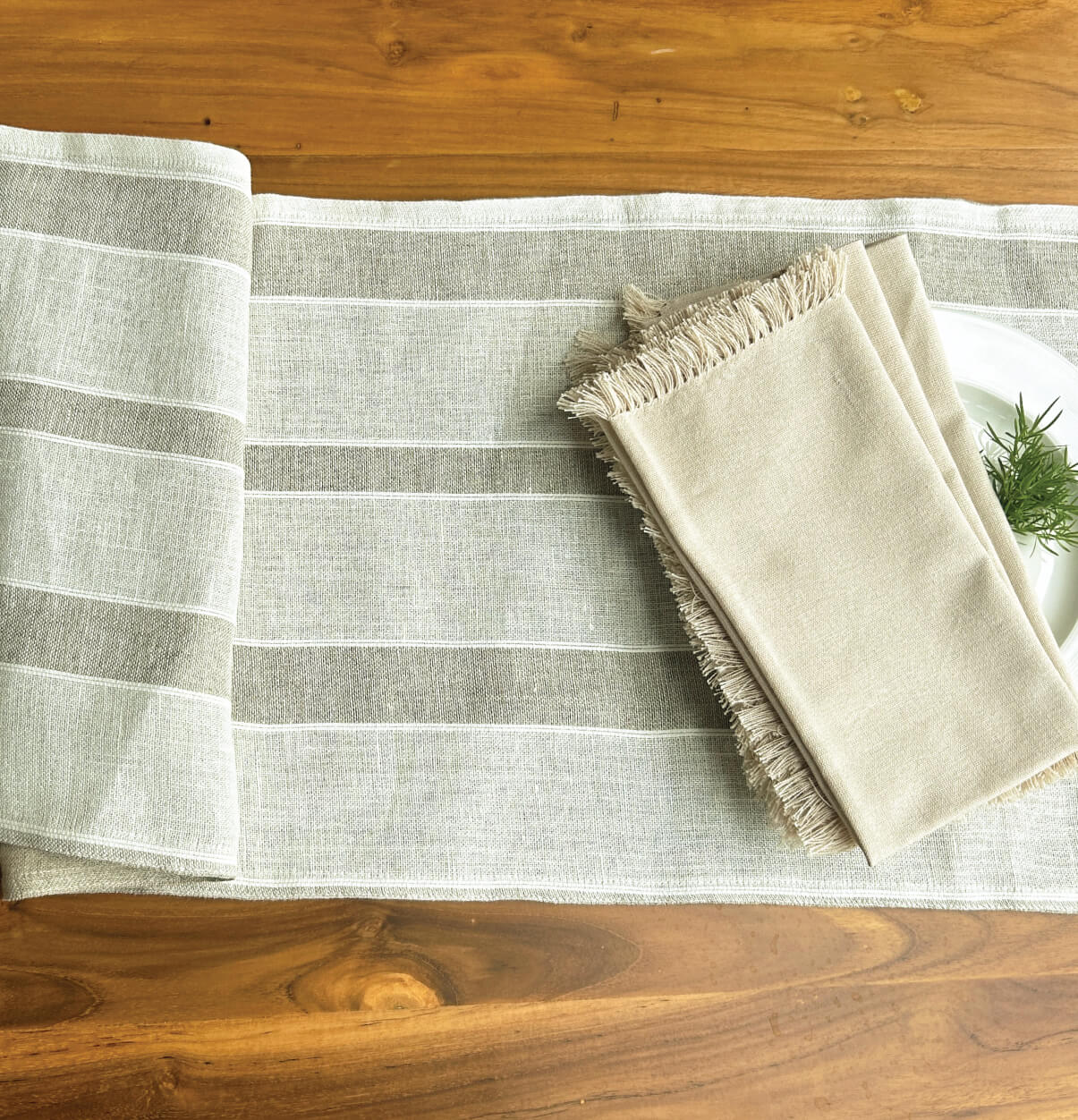 Shadow Stripe White / Beige Reversible Linen Table Runner