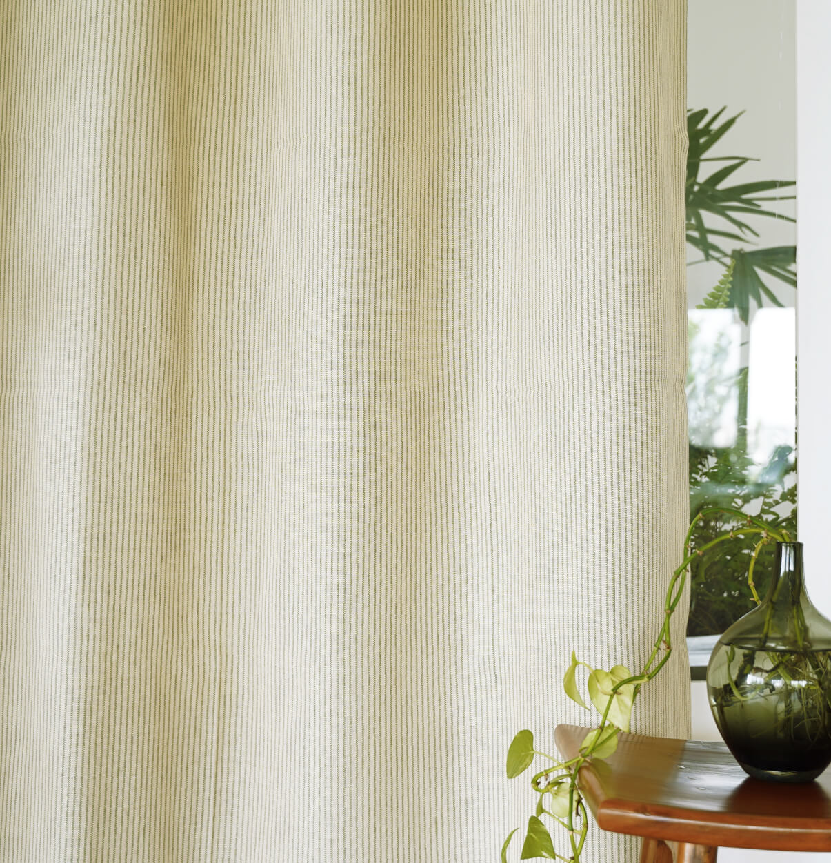 Fine Stripes Cotton Curtain Green