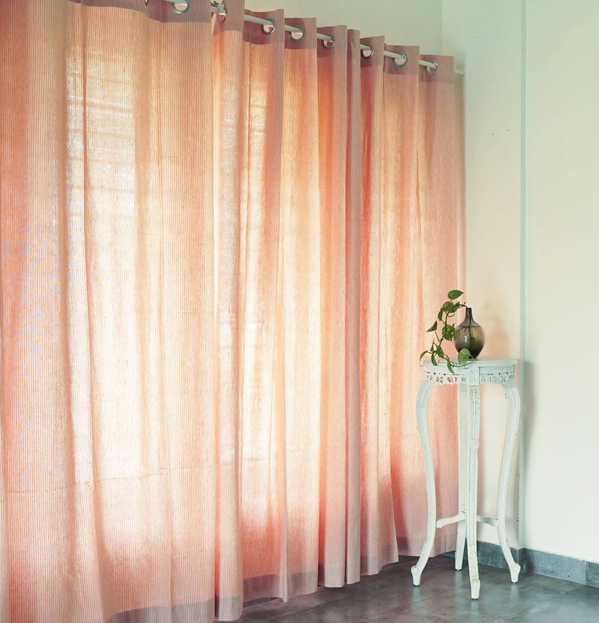 Fine Stripes Cotton Curtain Rust Orange
