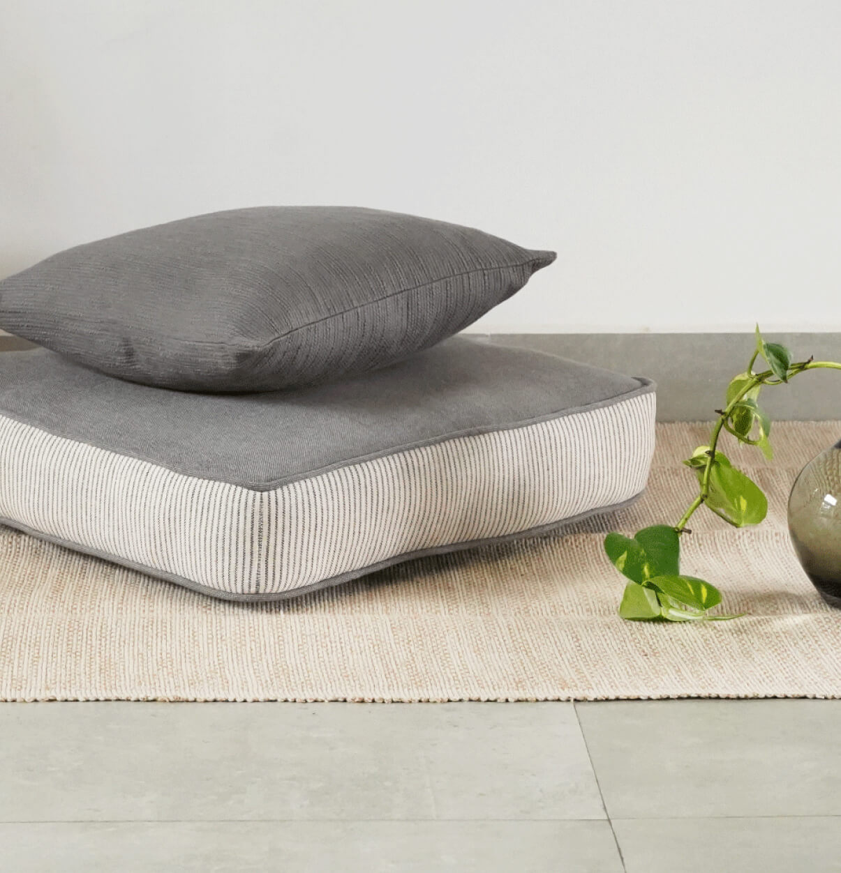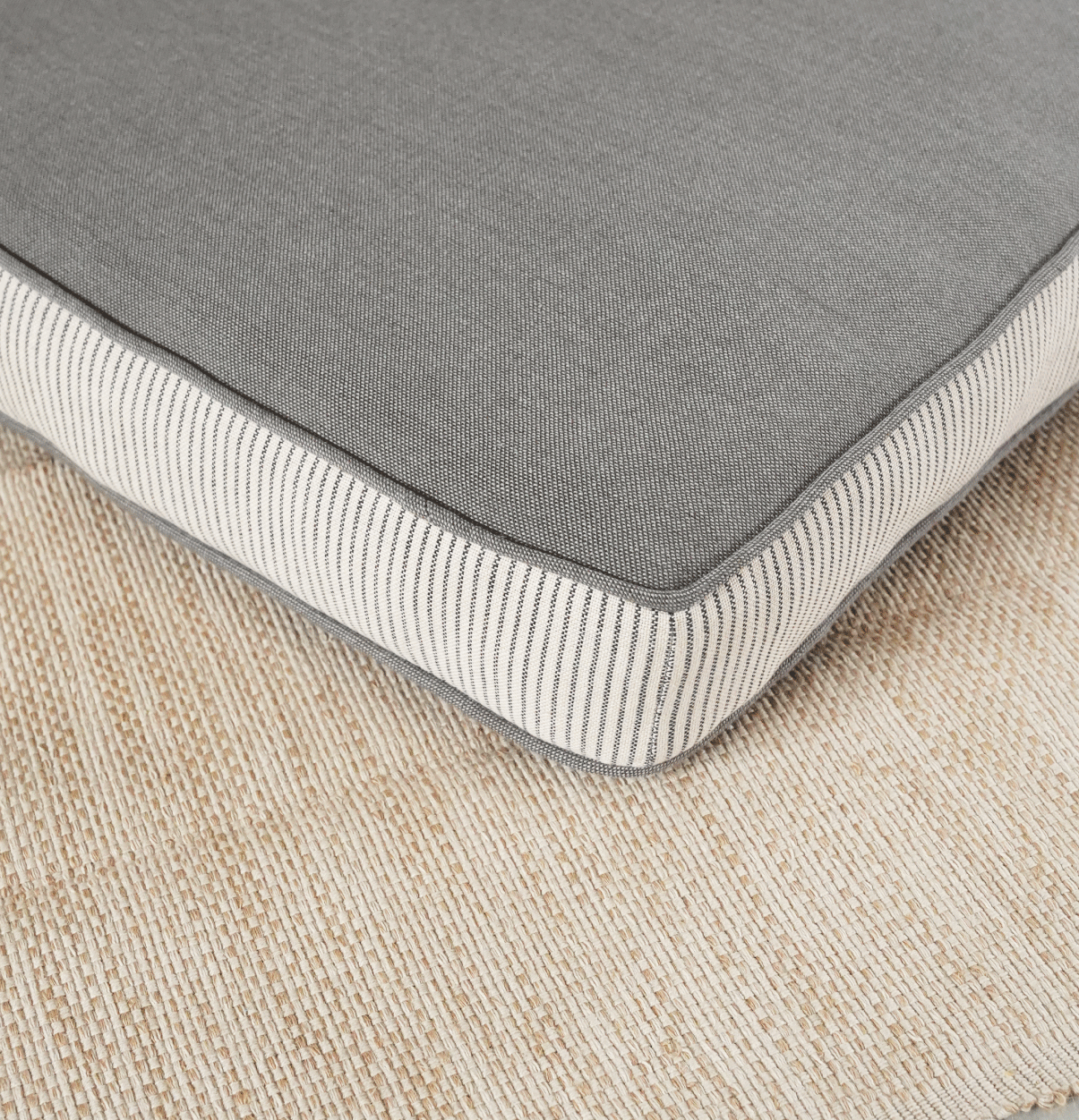 Stripe Edged Cotton Floor Cushion Nickel Grey